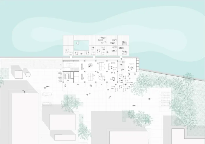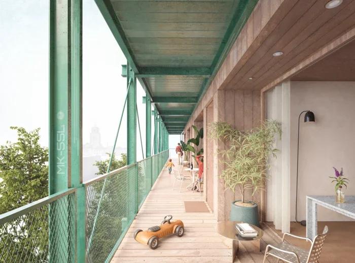 The building massing is carefully proportioned to ensure an all-sided architectural presence, responding to multiple sightlines across the harbour basin. Generous galleries, balconies and roof gardens blur the boundary between private and collective space, fostering social interaction and a strong sense of community.