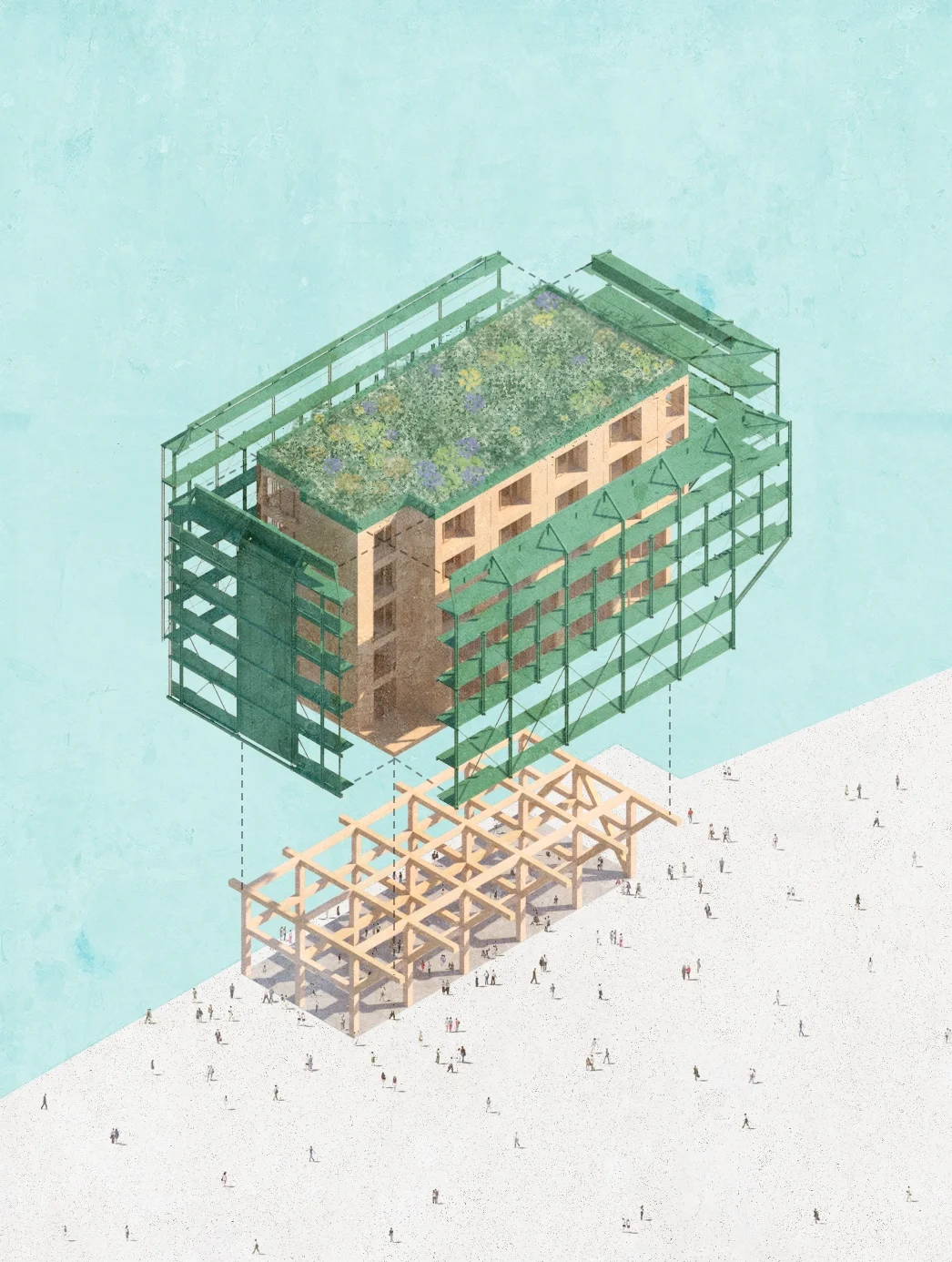 Phased adaptability: the building is designed to evolve over time, allowing future functional changes without structural loss or demolition.